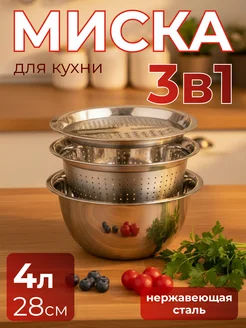 Кухонный набор дуршлаг терка миска нержавеющая сталь 28см