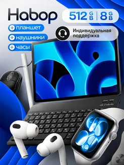 Планшет андроид с клавиатурой стилусом и чехлом 8 512Гб