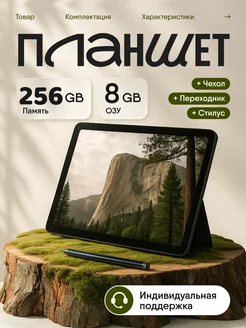 Планшет андроид с стилусом и чехлом 8 256Гб