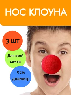 Нос клоуна красный накладной, набор 3 шт