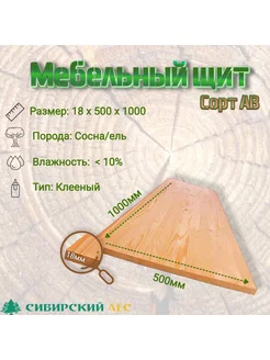 Мебельный щит деревянный сорт АВ 1000*500*18
