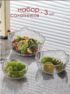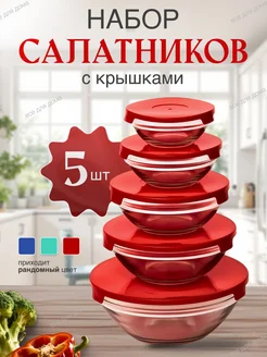 Салатники стеклянные с крышками набор 5шт "Классика"