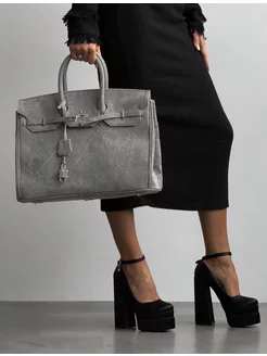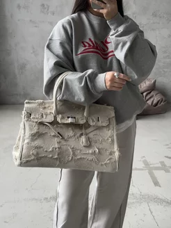 Сумка женская через плечо джинсовая биркин 40 см
