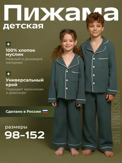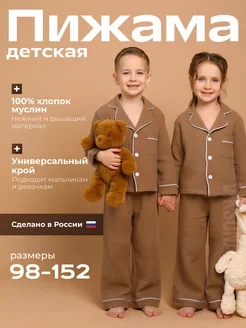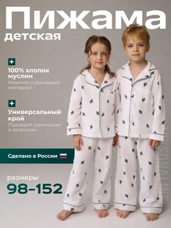 Пижама детская со штанами и рубашкой костюм для дома муслин