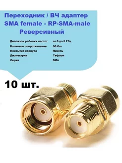10шт. RP-SMA-male - SMA-female антенный адаптер
