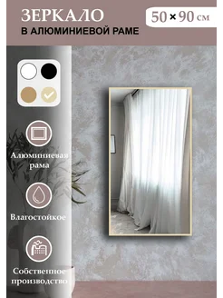 Зеркало настенное в золотой алюминиевой раме 50х90см
