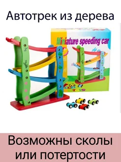 Автотрек с машинками детский горки из дерева, 4 этажа