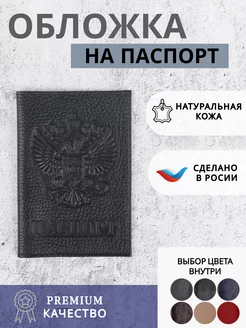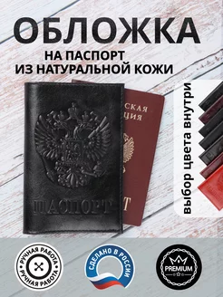 Обложка для паспорта из натуральной кожи черная пулл-ап