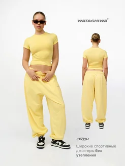 Штаны ваташива спортивные широкие джоггеры без начеса