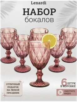 Бокалы для вина из цветного стекла 310мл Набор фужеров 6шт