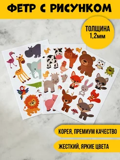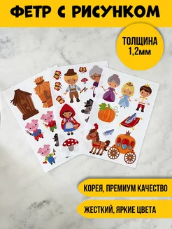 Фетр с рисунком, 3 листа. Разные принты сказки, животные