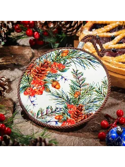 Подставка под горячее, керамика, 16 см, Шишки и желуди