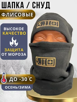 Шапка вязаная с шарфом из ангоры с пухом норки
