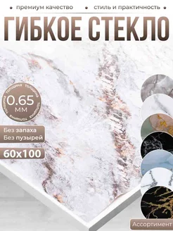 Гибкое стекло с рисунком для стола мраморное 60x100см