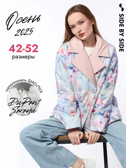 Куртка-пиджак демисезонная утеплённая с цветочным принтом