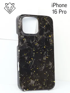 Чехол на iPhone 16 Pro кованый карбон с золото