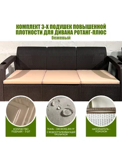 Комплект 3х подушек для трехместного дивана ротанг, бежевые
