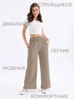 Брюки палаццо классические широкие на резинке