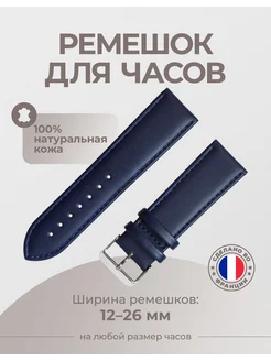 Ремешок для часов кожаный 12 14 16 18 20 22 24 26 мм синий