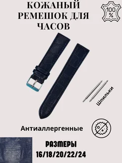 Ремешок для часов кожаный 16 18 20 22 24 26 мм синий