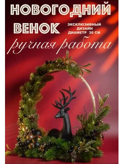 Венок новогодний "Графитовый олень" d 30 см ручной работы