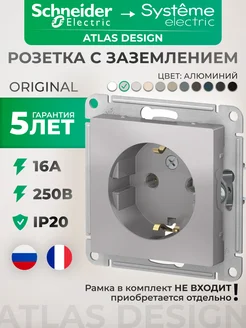 Розетка черная одинарная с заземлением 16А (2 шт.)