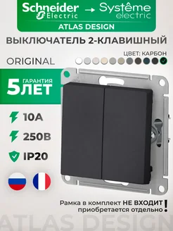 Выключатель двухклавишный черный без рамки (2 шт.)