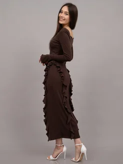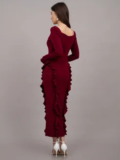 Платье миди вечернее с рюшами