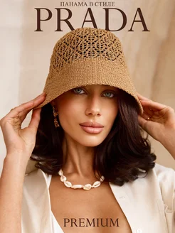 Панама шляпа клош летняя кроше плетеная с узкими полями