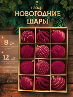 Набор новогодних бархатных шаров на елку 12 шт