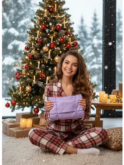 Шелковая пижама для дома новогодняя большие размеры