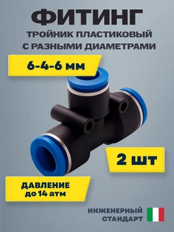 Фитинг Т-образный с разными диаметрами 6-4 мм (2 шт)