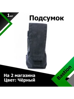 Подсумок на 2 автоматных магазина с клапаном Черный (Black)