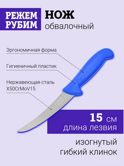 Нож обвалочный изогнутый жесткий клинок, 13 см