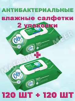 Влажные салфетки антибактериальные с клапаном 2 упаковки