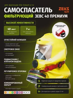 Самоспасатель при пожаре фильтрующий ГДЗК Зевс 40 Премиум