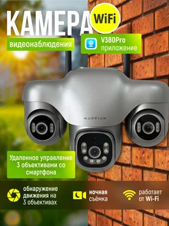 Камера видеонаблюдения уличная wi-fi с тремя объективами