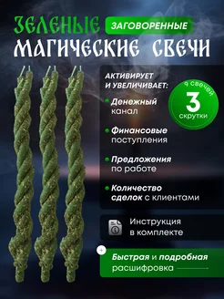 Магические свечи зеленые с заговорами 3 скрутки (9шт)