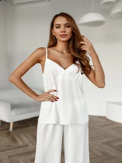 Пижама шелковая со штанами белая