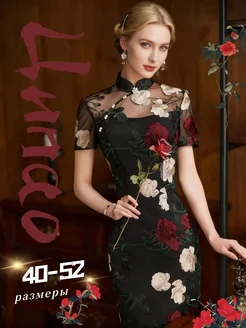 Платье в китайском стиле Ципао с вышивкой