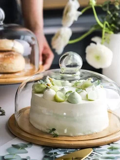 Тортовница из Бамбука со Стеклянной Крышкой 33 см