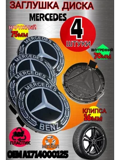 Заглушки литого диска Mercedes 70-75 черный хром 4 штуки