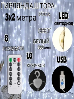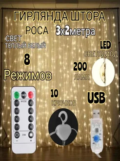 Светодиодная LED гирлянда штора 3х2 занавес теплый белый