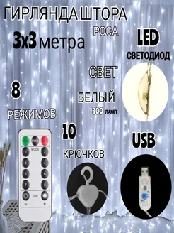 Светодиодная LED гирлянда штора 3х3 занавес белый