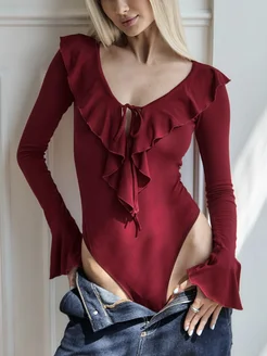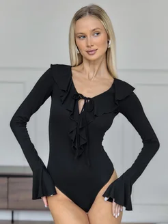 Нарядное боди с длинным рукавом и воланами