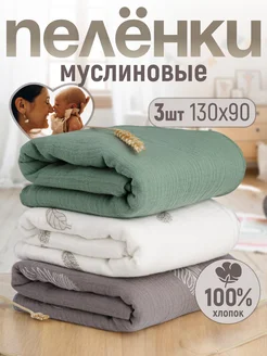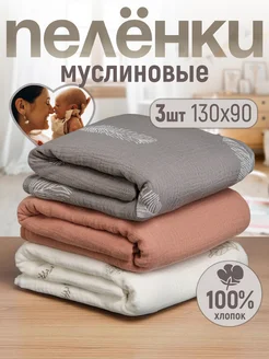 Муслиновые пеленки для новорожденных 130 х 90 см набор 3 шт