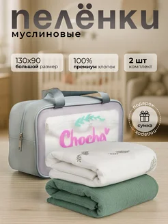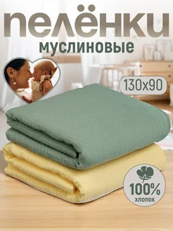 Муслиновые пеленки для новорожденных набор 2шт 130х90 см