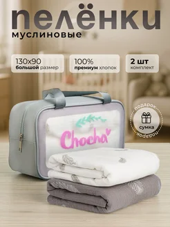 Муслиновые пеленки набор 2 шт с сумкой для роддома