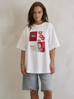 футболка белая оверсайз с принтом бордо