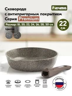 Сковорода антипригарная премиум мокко, 22 см, съемная ручка